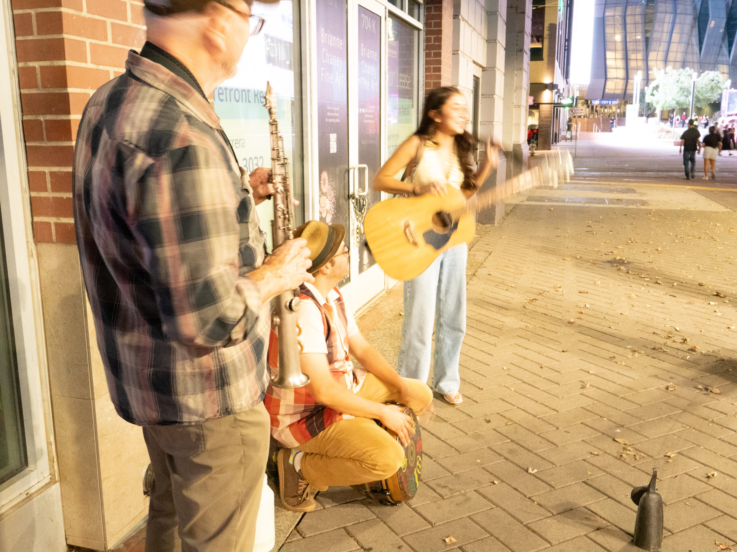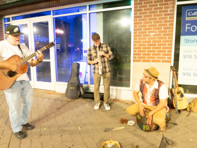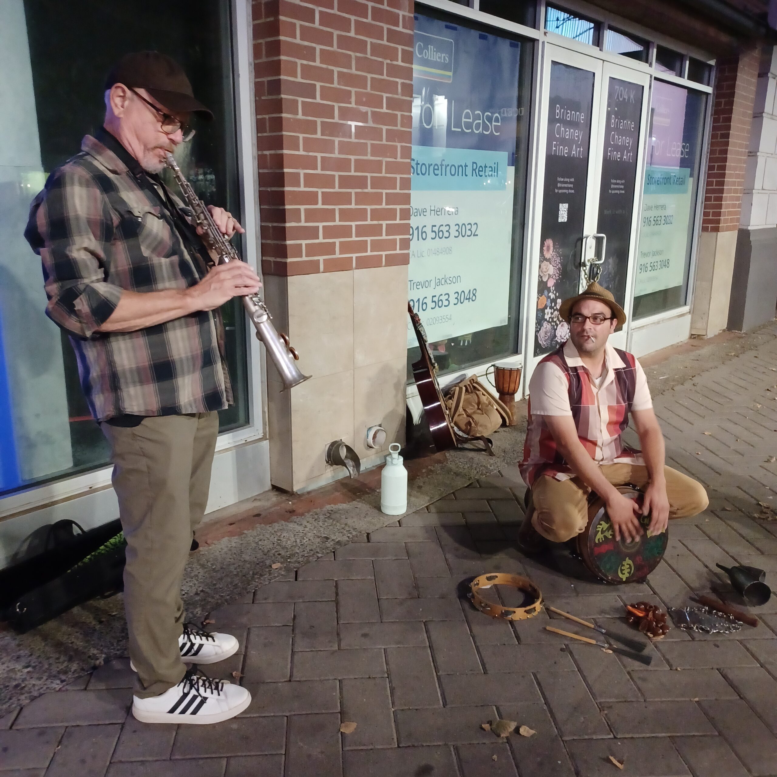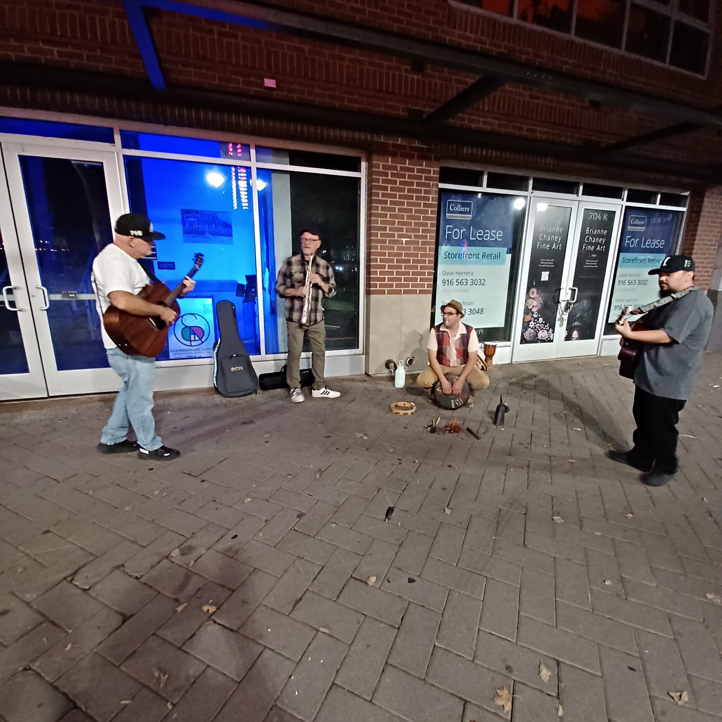 Notes: Rob Esperanza has a text event list he sends out flyers. So I saw it and decided I would go. He doesn’t run the event. The organizers showed up a little late to open the door. So Rob started a little street open mic. And people showed up to play some of the instruments Rob had out there. It was interesting that people actually left a dollar or two. I was wondering if Sacramento is starving for art and culture so much downtown. Also, I must mention the street preacher by the DoCo sign. Using a very loud speaker, so we were a bit of competition for him. He was preaching up a storm.