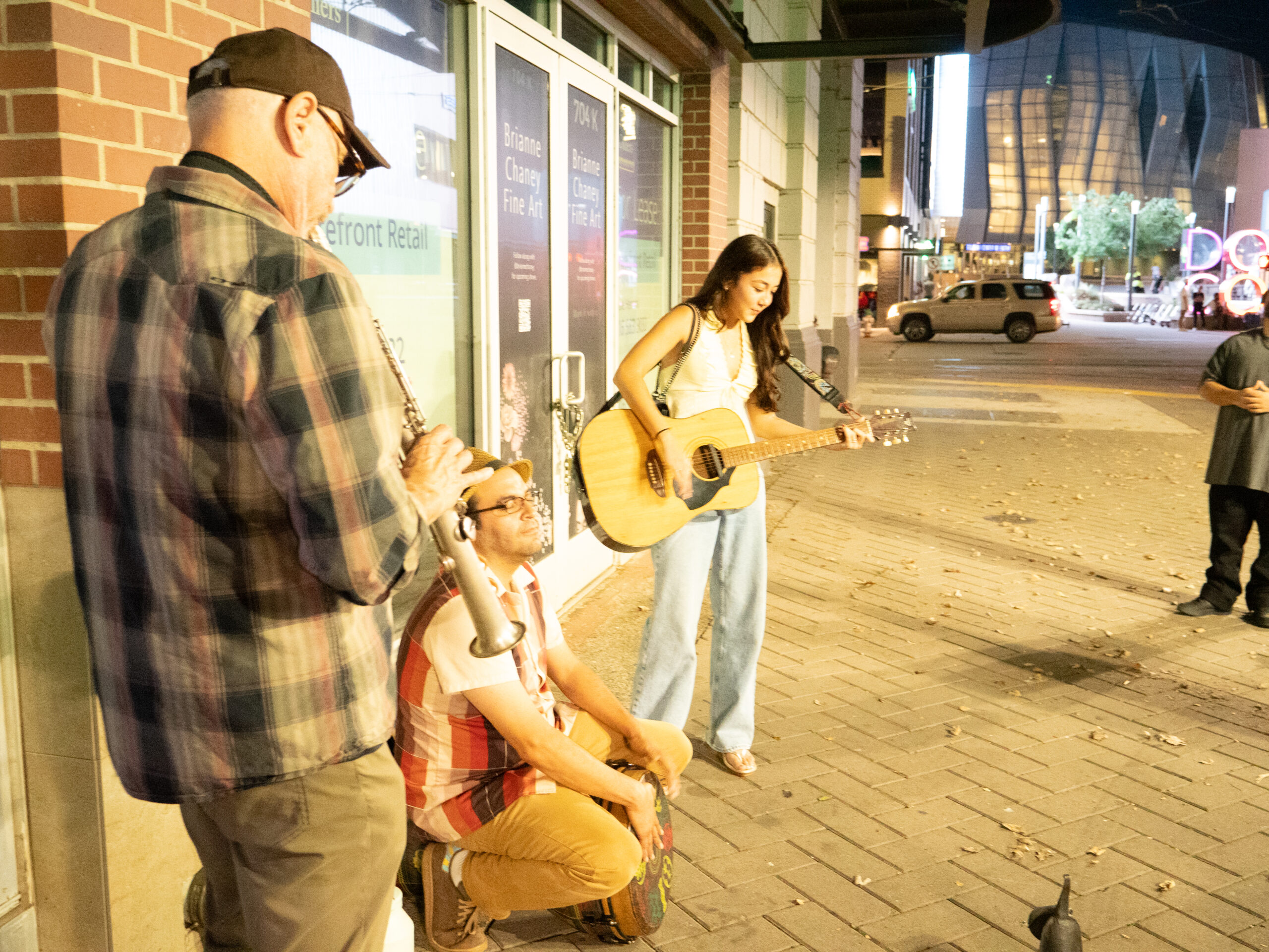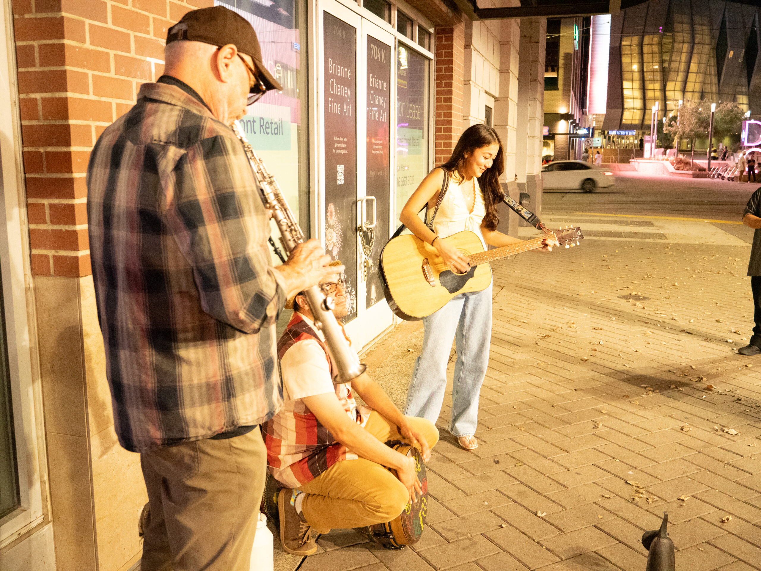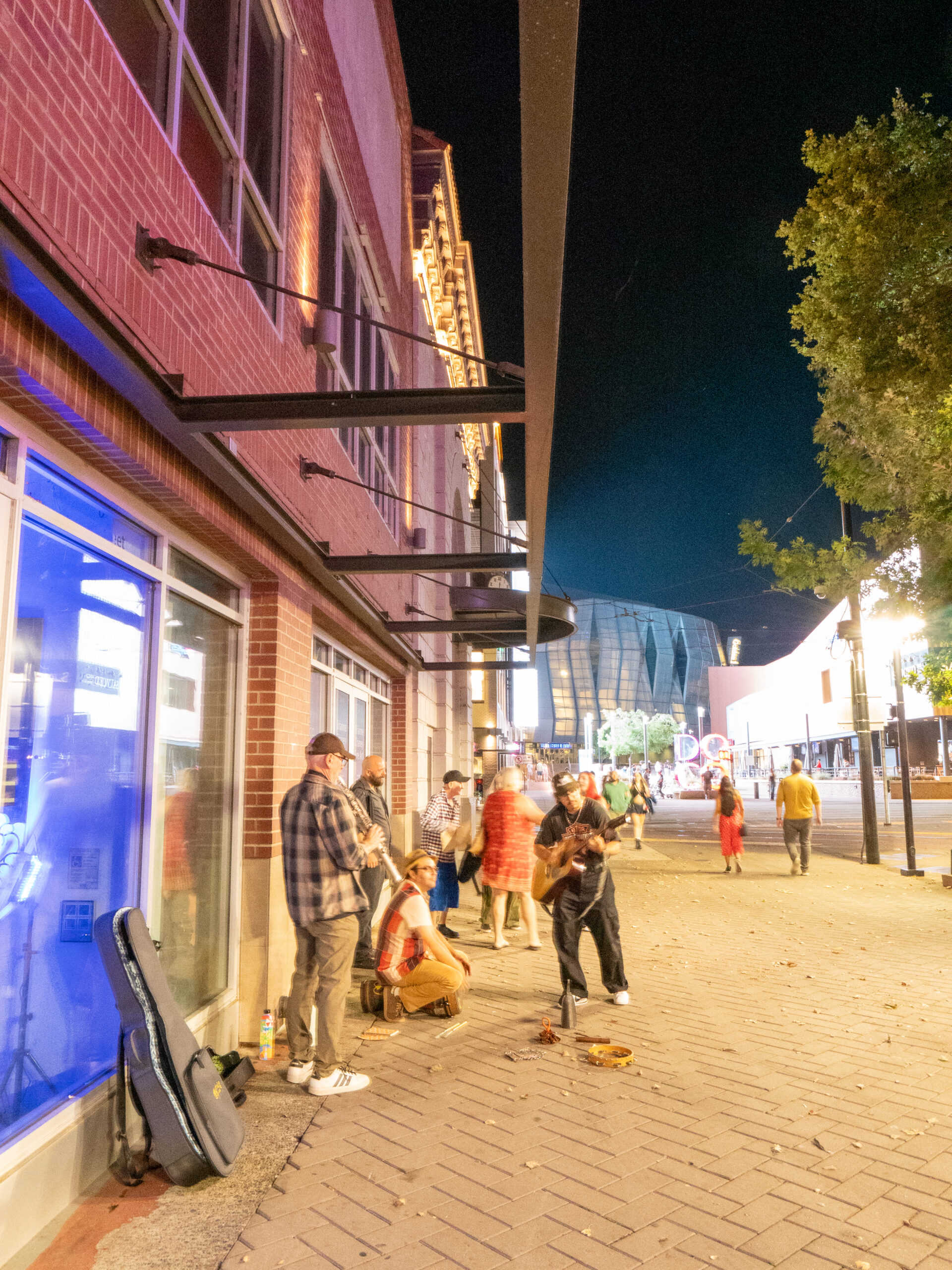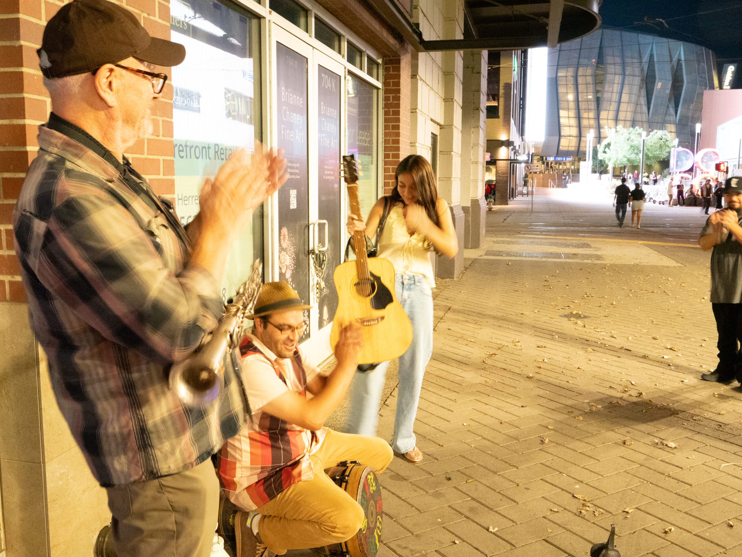 Notes: Rob Esperanza has a text event list he sends out flyers. So I saw it and decided I would go. He doesn’t run the event. The organizers showed up a little late to open the door. So Rob started a little street open mic. And people showed up to play some of the instruments Rob had out there. It was interesting that people actually left a dollar or two. I was wondering if Sacramento is starving for art and culture so much downtown. Also, I must mention the street preacher by the DoCo sign. Using a very loud speaker, so we were a bit of competition for him. He was preaching up a storm.
