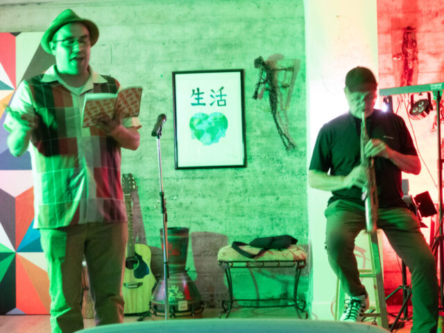 The open mic was very loosely run, and Rob kind of took the helm. Gene Avery read some pieces, Rob as well, and we had some singers and rappers. I didn’t photograph everything; I just kind of took things in. I kind of beat myself up afterward for not having my street journaling hat on. The space and the series have a lot of potential. I think I would add a small PA system and a proper host to get things going in a good direction. I had problems hearing some of the rapper’s lyrics, but other than that, it was a cool space and good, positive people.